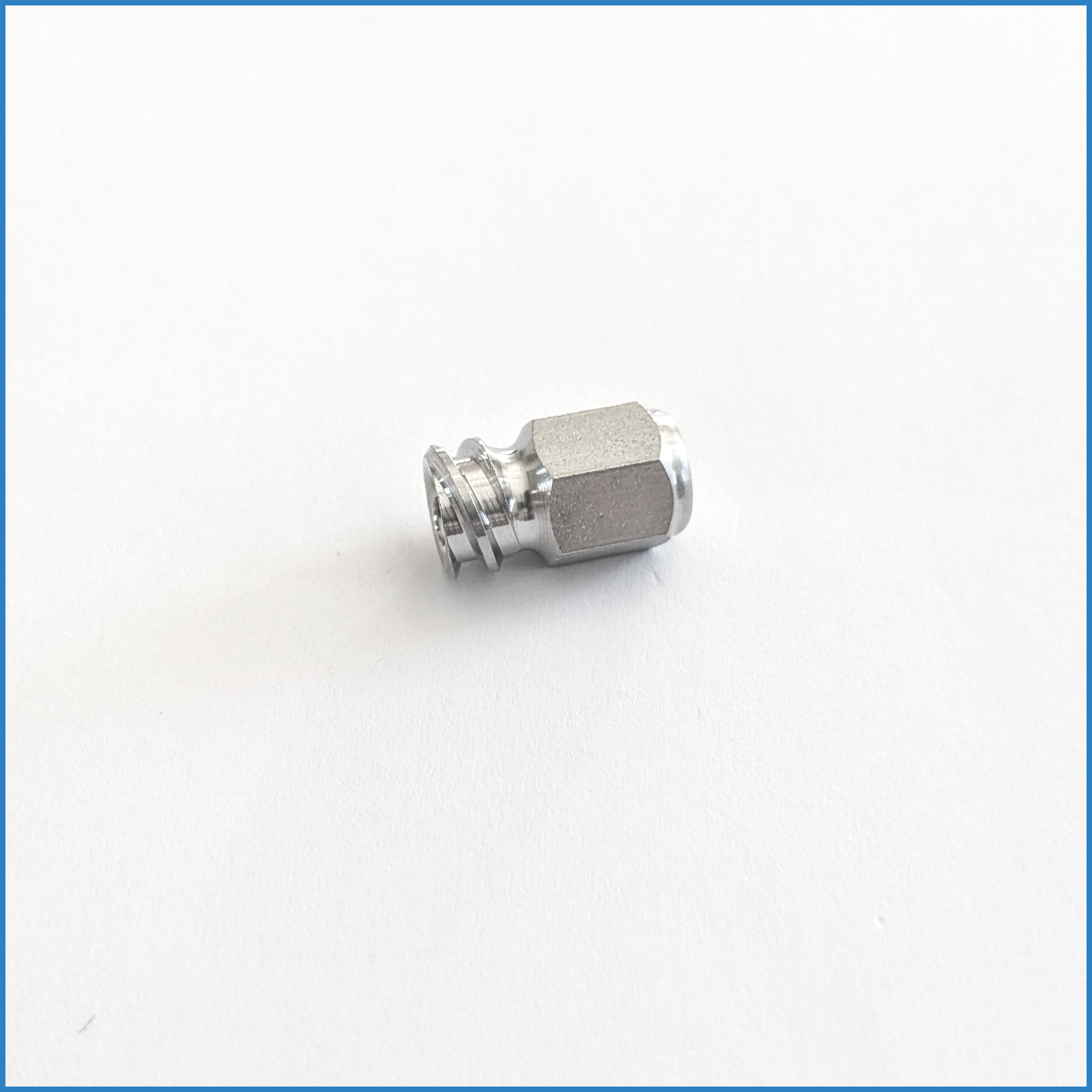 Precision-machined stainless steel ensures corrosion resistance, durability, and structural integrity. It functions as a precise interface between tubing and threaded connections, ensuring secure fluid pathways. Suitable for bench testing, iterative design, and diagnostics, supporting consistent results in demanding research environments.