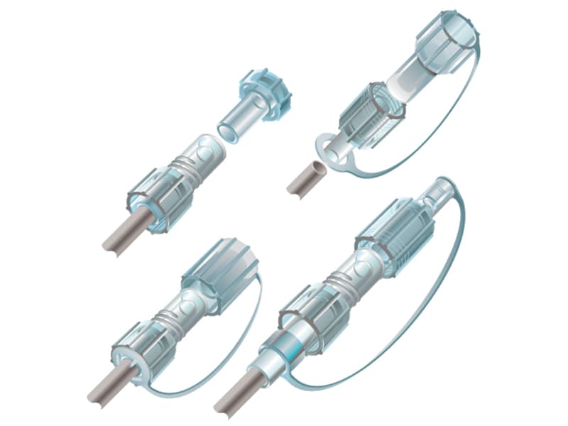 A large-bore protective male cap with a built-in tube pocket for parking and protecting the line. Designed for tubing with a .620″ inner diameter. Commonly used for organizing sterile field lines, protecting tubing, shielding ports during storage or transport, and capping unused connections to maintain cleanliness.