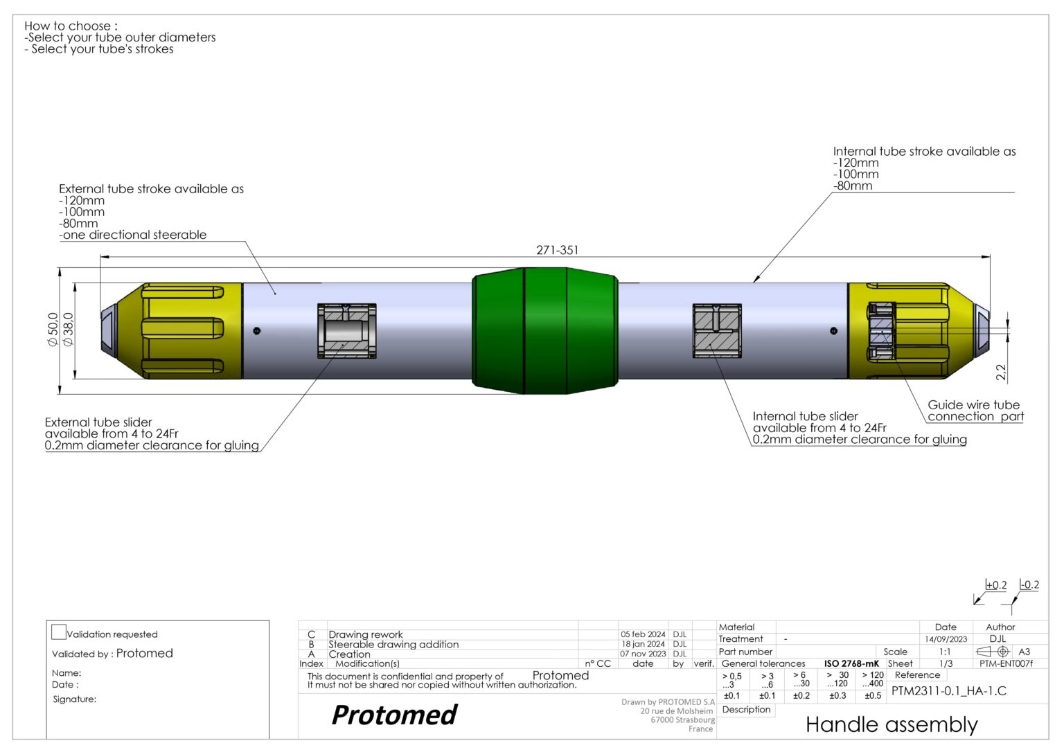 Handle with Ext steerable tube - Int Stroke 10 cm - Ext Tube OD 18 Fr - Int Tube OD 08 Fr