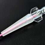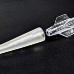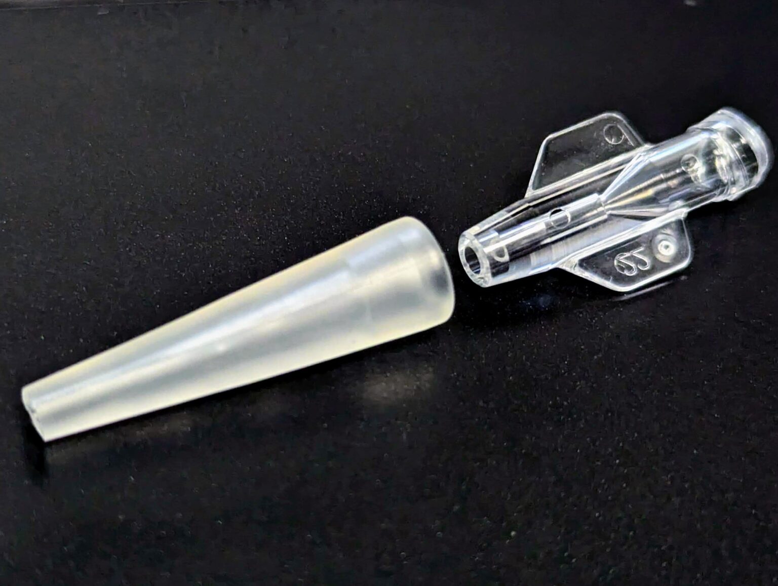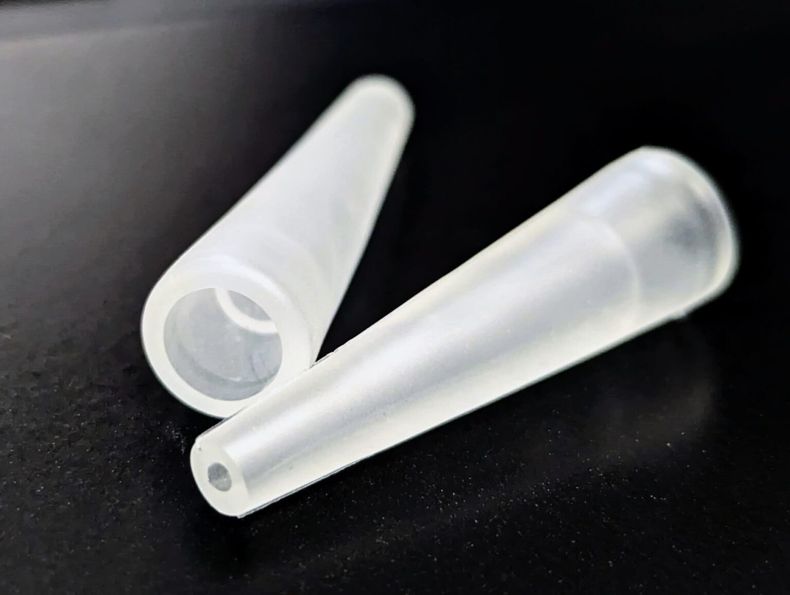 Strain relief component made from Pebax 35D for catheter systems sized 6Fr. Supplied in 5/bag. Ideal for secure, flexible strain management in medical tubing assemblies.